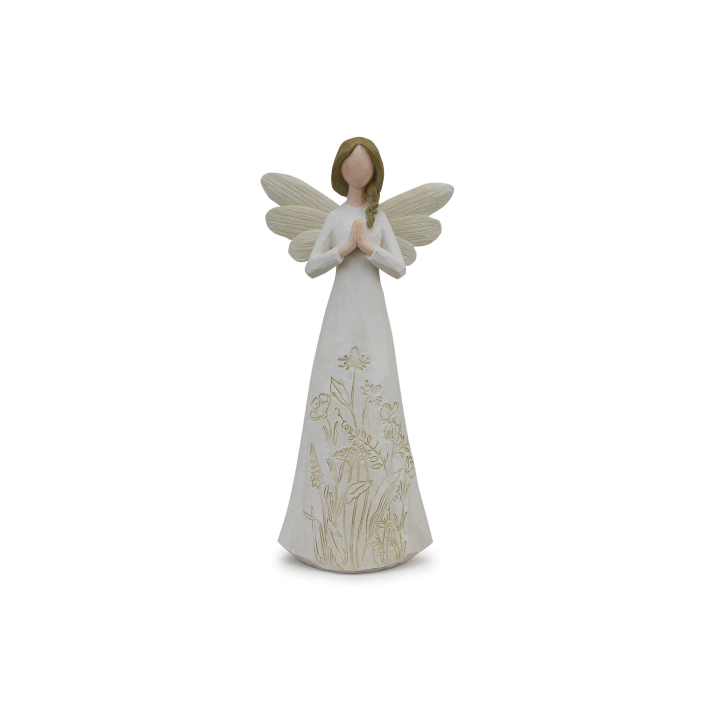 Bring a serene charm to your space with this set of Beige Floral Etched Angel Figurines. Crafted from durable polyresin and stone powder, each angel features a unique design with intricately carved floral details and soft neutral hues of beige, white, and brown. Whether displayed on a shelf, mantel, or tabletop, these figurines add a peaceful, elegant touch to any room. Perfect for year-round display or seasonal decor, this timeless trio is ideal for indoor or covered outdoor use. Sold in a set of three assorted designs to create a balanced and meaningful display in your home.