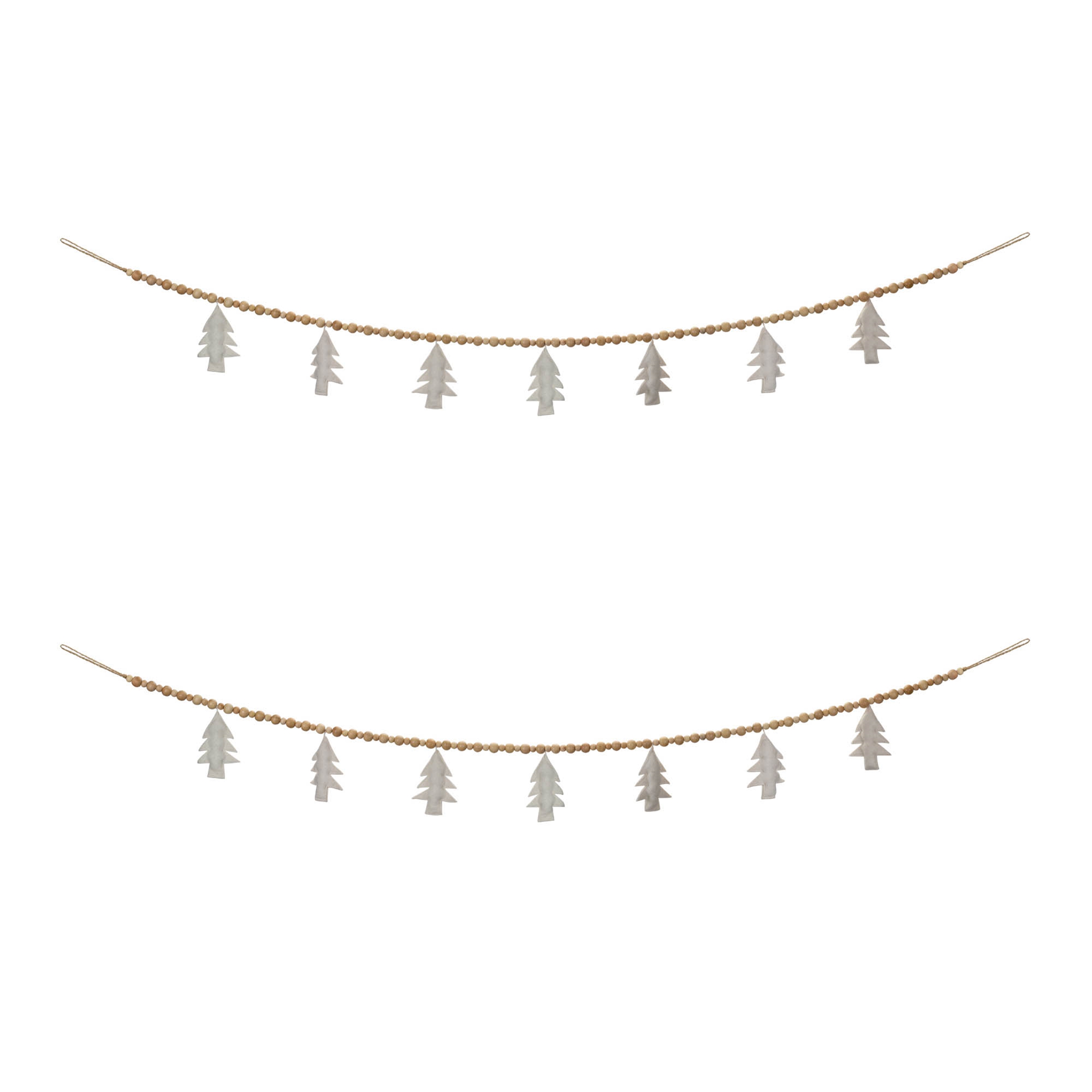 Add a cozy, rustic touch to your holiday decor with the Wood Beaded Wool Tree Garland Set. These charming garlands are crafted from quality wood and wool, offering a perfect blend of white and brown tones to elevate your Christmas decorations. Whether adorning your Christmas tree, wrapping around a staircase banister, or enhancing a wreath, these garlands bring timeless beauty and warmth to any space. Measuring 72 inches in length, they’re the ideal size for any festive setup, providing a soft yet durable accent that will last for seasons to come. Sold in a set of two matching pieces to create a balanced display in your home.