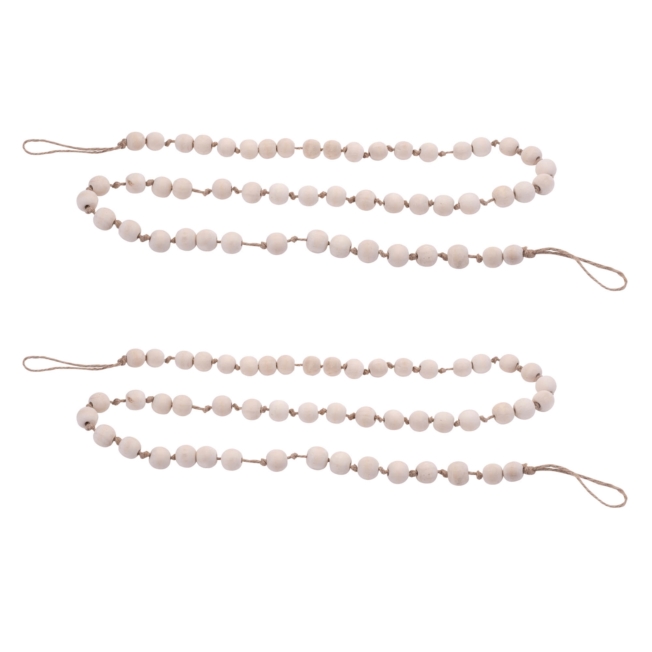 Bring a touch of rustic charm to your holiday decor with the Wood Beaded String Garland. Featuring wintry white tones and a rounded bead design, this garland is crafted with natural wood beads and a durable jute rope. Ideal for adding a traditional touch to your Christmas tree, fireplace mantle, or wreaths and garlands, it beautifully enhances your seasonal decor with a warm, natural feel. Sold in a set of two matching pieces, this garland adds a timeless element to your festive displays.