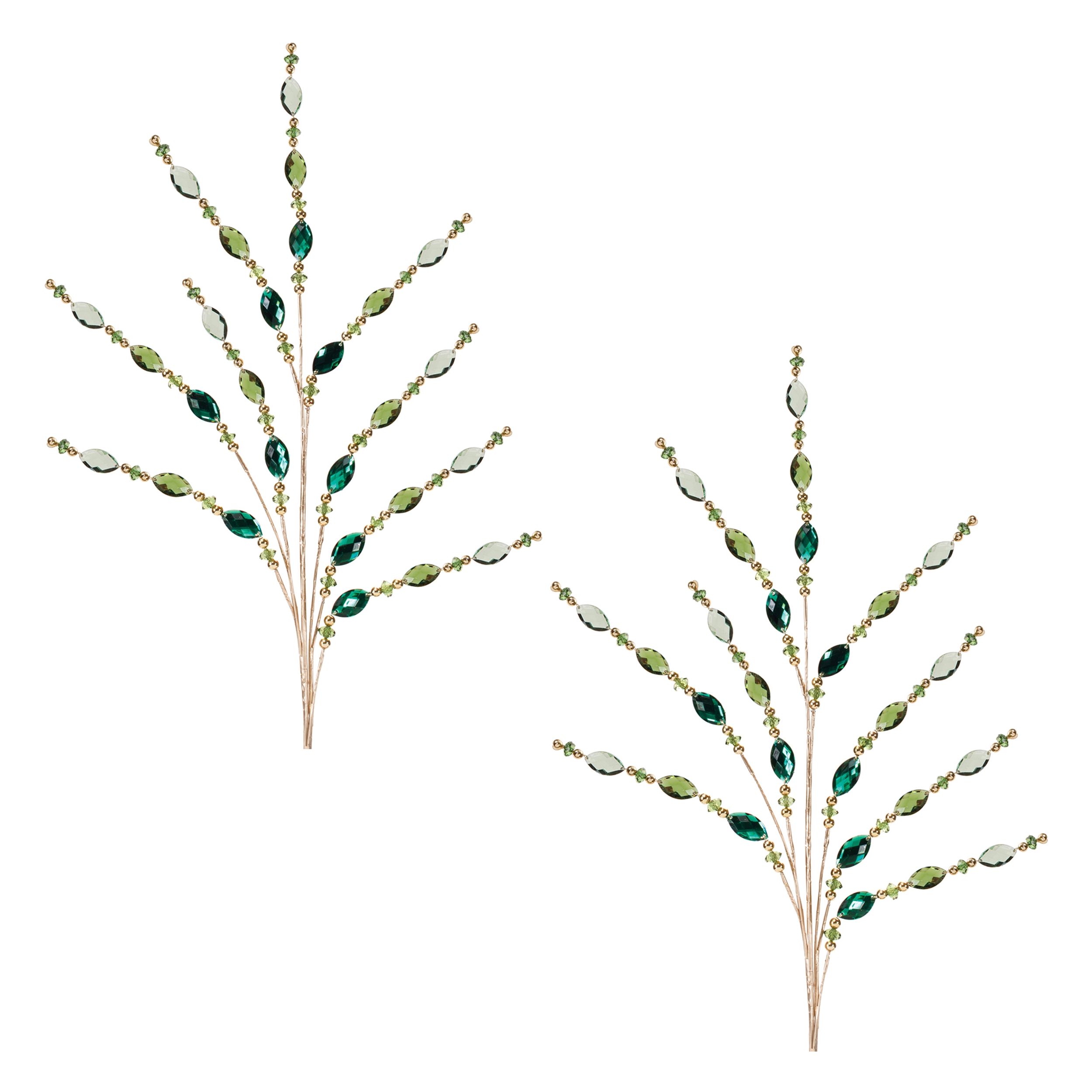 Add a touch of elegance and cheer to your winter decor with the Green Jewel Bead Spray set. This pair of 33.5″ sprays features deep green hues and sparkling jewel accents, perfect for creating a festive, eye-catching holiday display. Crafted from durable plastic and iron wire, these versatile sprays can be used in vases, wreaths, or garlands to bring height and visual interest to any arrangement. Ideal for your home or as a thoughtful holiday gift, these bead sprays will add a joyful touch to your celebrations for seasons to come. Sold in a set of two matching pieces to create a balanced display in your home.