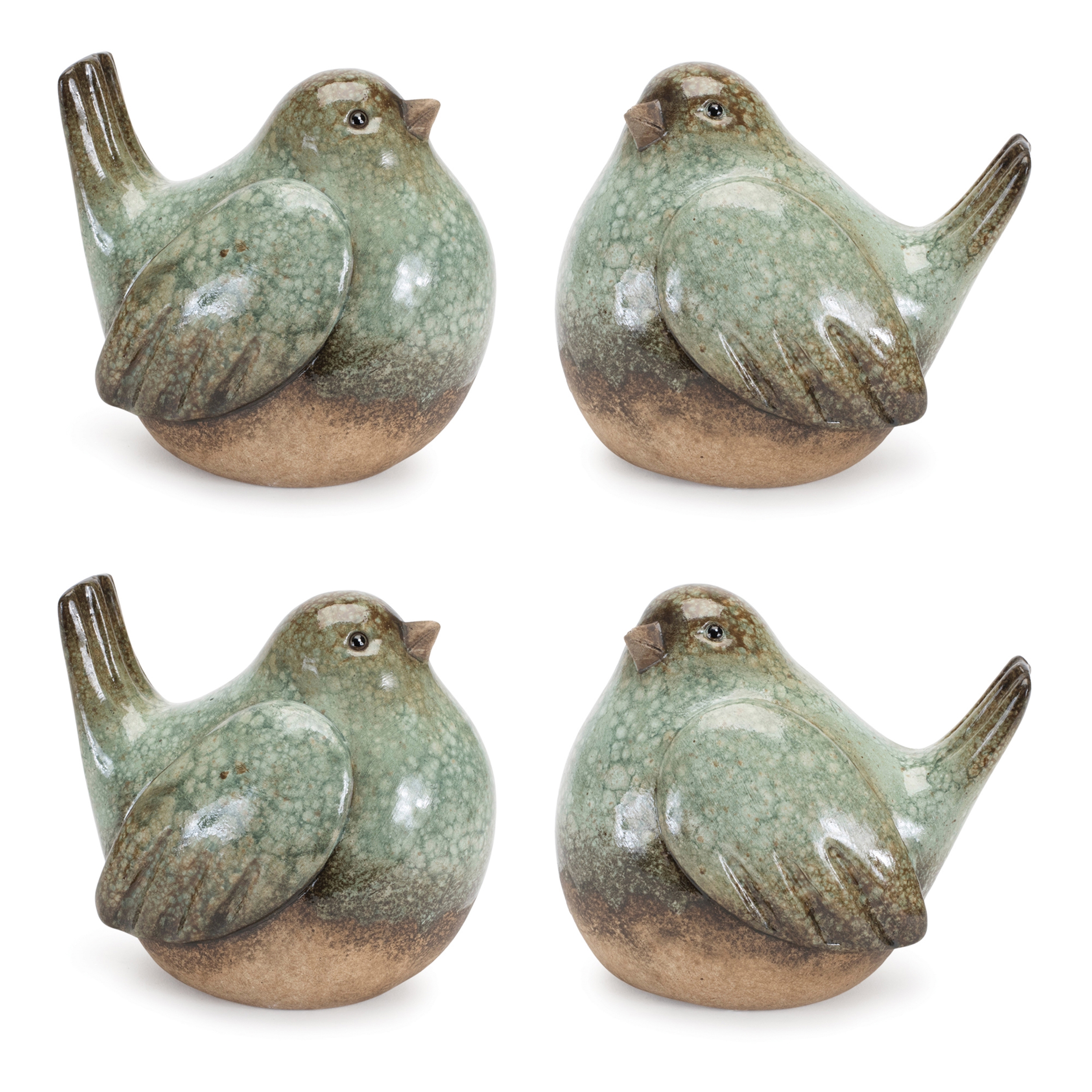 Add a calming touch of rustic charm to your home with this serene set of Terra Cotta Bird Figurines. Featuring earthy green and brown tones, these ceramic birds are beautifully accented with a distressed finish and unglazed detailing for a weathered, vintage feel. Whether perched on a shelf, nestled on a coffee table, or gifted to a bird lover, these figurines bring warmth and whimsy to any indoor space. Ideal for farmhouse, cottagecore, and country-style decor. Sold in a set of four pieces with two assorted designs to create a meaningful display in your home.