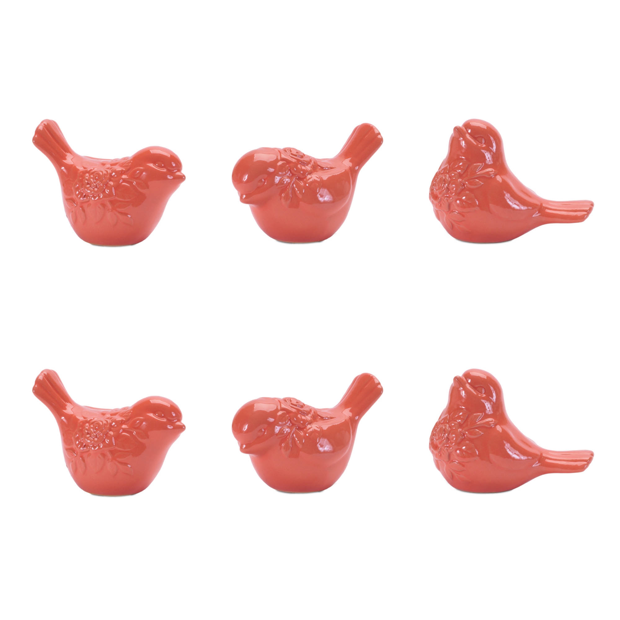 Add a cheerful and nature-inspired touch to your space with this set of six Ceramic Floral Bird Figurines. Crafted from ceramic in bright pink tones with a shiny glazed finish, each bird features elegant floral accents, bringing a pop of color and charm to your home. Perfect for displaying on bookshelves, tabletops, or mantels, these figurines are ideal for adding a playful yet refined vibe to any room.