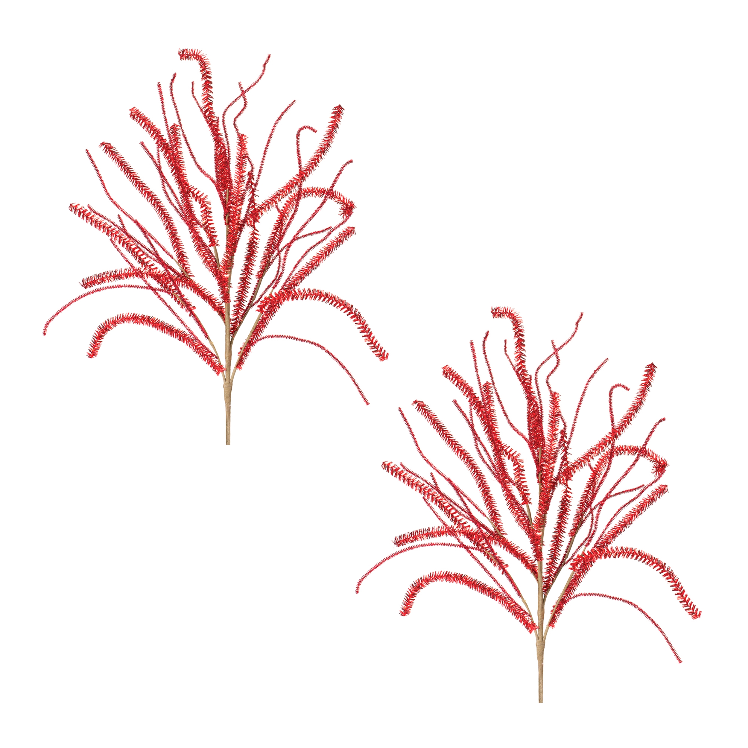 Bring a festive touch to your holiday decor with this Glittered Pine Tinsel Branch. Designed to add shimmer and elegance, these red Christmas stems are perfect for enhancing your Christmas tree, seasonal wreaths, table centerpieces, or holiday porch pots. The delicate tinsel accents and rich red tones create a sparkling, eye-catching display. Made from high-quality plastic, these durable branches are designed to last for seasons to come. Whether used alone or mixed with other holiday greenery, these Christmas sprays bring the perfect amount of holiday cheer to any setting. Sold in a set of two matching pieces to create a balanced display in your home.