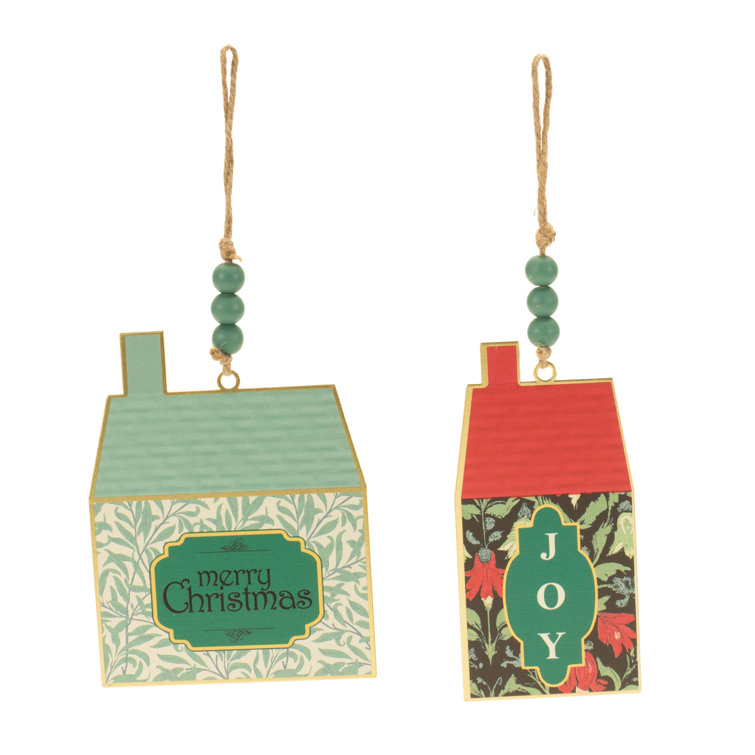 Holiday House Ornament (Set of 4) 6″H Iron/Wood Beads