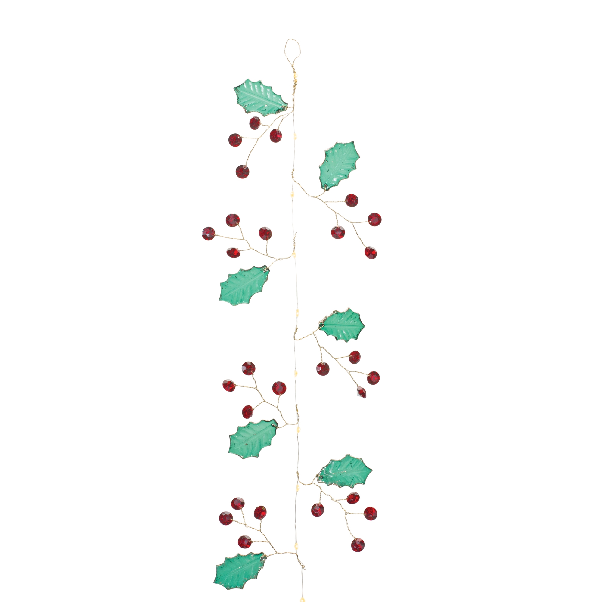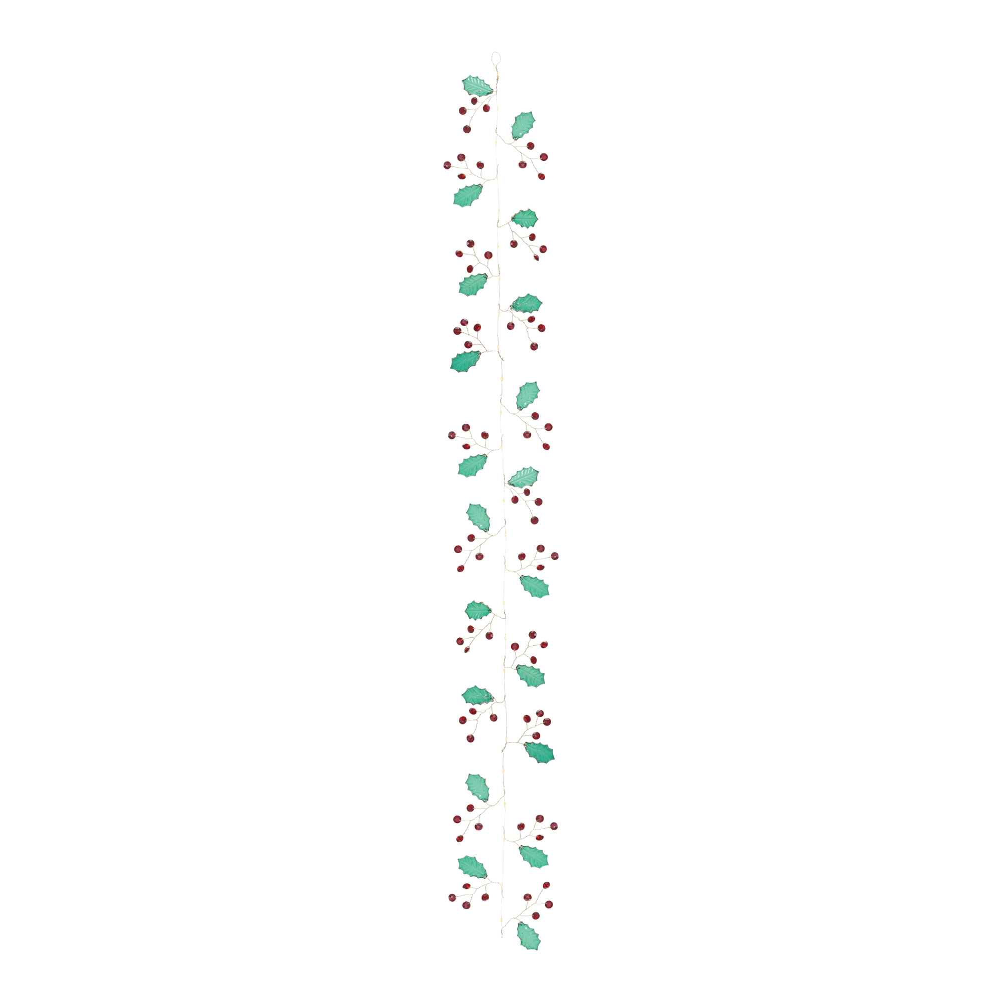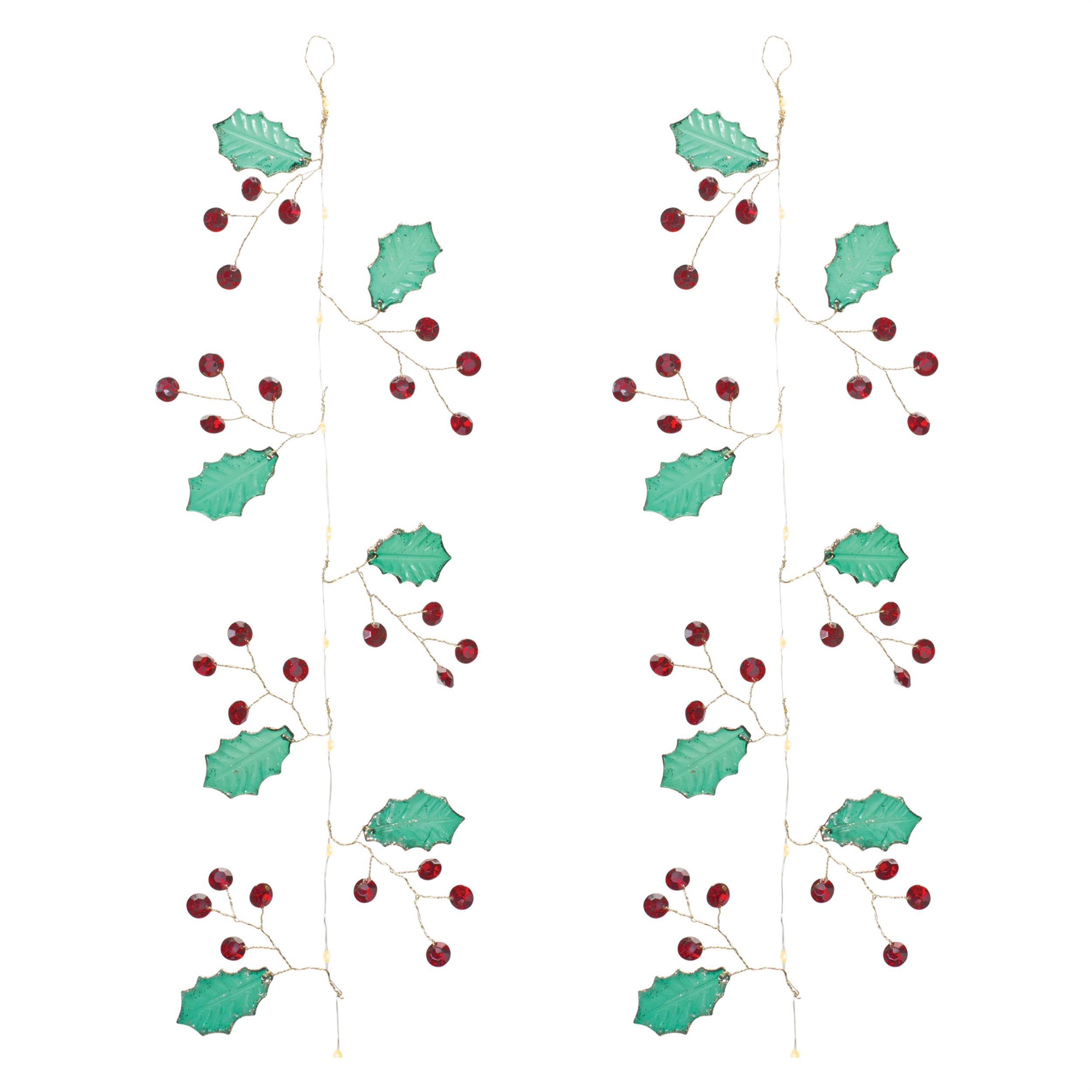 Add a festive touch to your holiday decor with this elegant Holly and Gem Jewel Garland Set. Designed with classic red and green hues and adorned with sparkling plastic jewel accents, this garland brings a timeless charm to your Christmas setup. Crafted from durable plastic and iron wire, it’s built to last for seasons to come. Whether draped along a staircase banister, wrapped around your Christmas tree, or woven into a pine wreath, this decorative garland is sure to spread holiday cheer. Recommended for indoor use only. Sold in a set of two matching pieces to create a balanced display in your home.