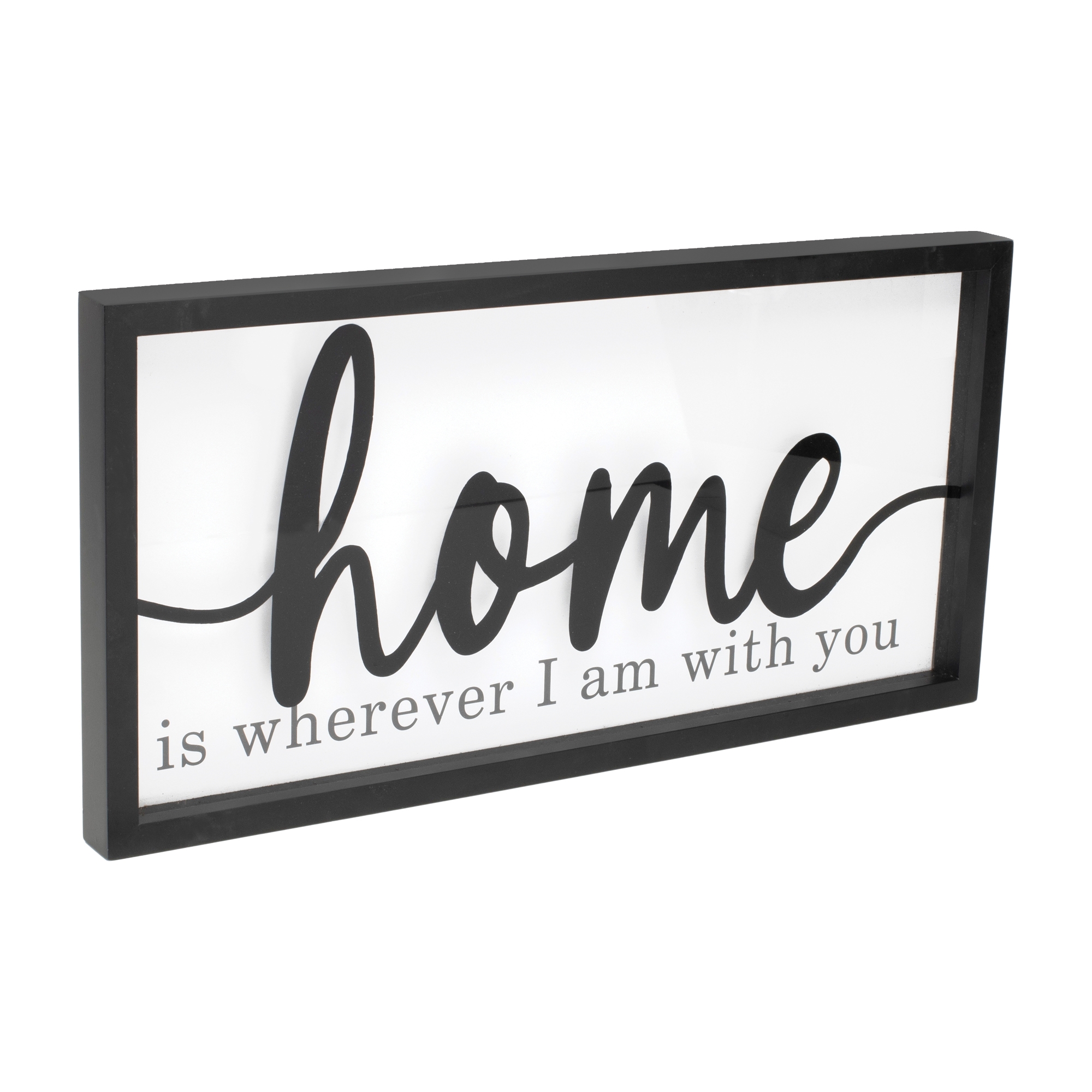 Add a warm, welcoming touch to your space with this elegant Home Sentiment Sign. Featuring the heartfelt phrase “Home is Wherever I am with You,†this piece combines timeless black and white hues with graceful script and a refined frame. Crafted from quality MDF wood and glass, it brings style and sentiment to your living room, entryway, or hallway. Whether you’re refreshing your decor or gifting a loved one, this sign is a beautiful reminder of what truly makes a house a home.