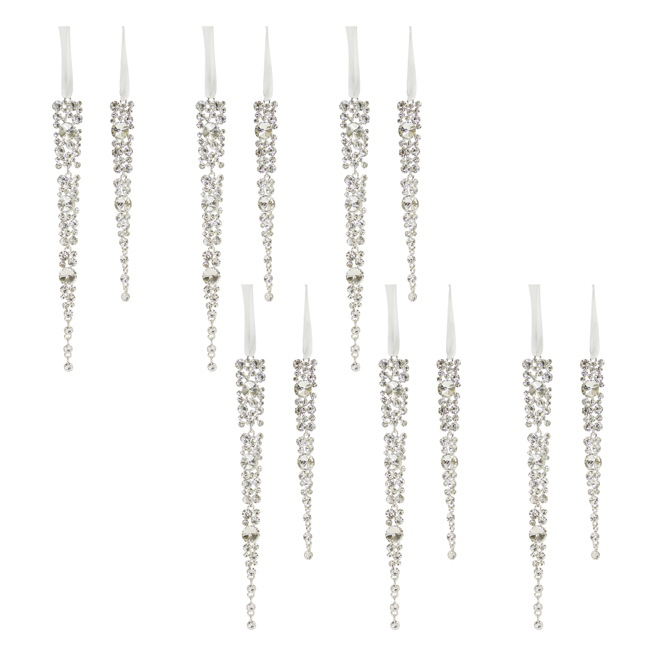 Elevate your holiday decor with the stunning Jewel Icicle Ornaments. Crafted from durable metal with a chic silver finish and jewel accents, these modern icicle ornaments bring a touch of elegance to any Christmas tree. The set is perfect for both residential and commercial displays. Whether you’re gifting them to loved ones or adding them to your own tree, these ornaments are designed to create lasting memories. Easy to hang with attached strings, these versatile ornaments are ideal for indoor and outdoor covered use, ensuring your holiday season shines bright for years to come. Sold in a set of twelve pieces in two assorted sizes to make a statement in your Christmas tree display.