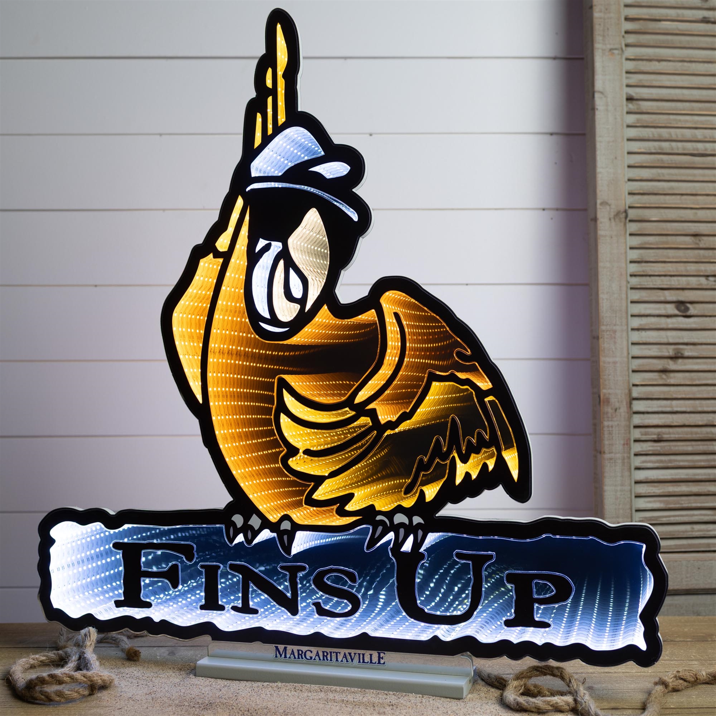 Bring the island vibes to your space with the Margaritaville Parrot “Fins Up” Ekkolight, standing 28.5 inches tall. This officially licensed acrylic lighted sign features the iconic Margaritaville parrot in vibrant orange, white, and black, glowing with tropical energy. Designed with a UL plug for easy use, it’s the perfect statement piece for bars, game rooms, patios, or any paradise-inspired hangout. Whether you’re a Parrothead or just love laid-back style, this light delivers fun, color, and coastal flair.