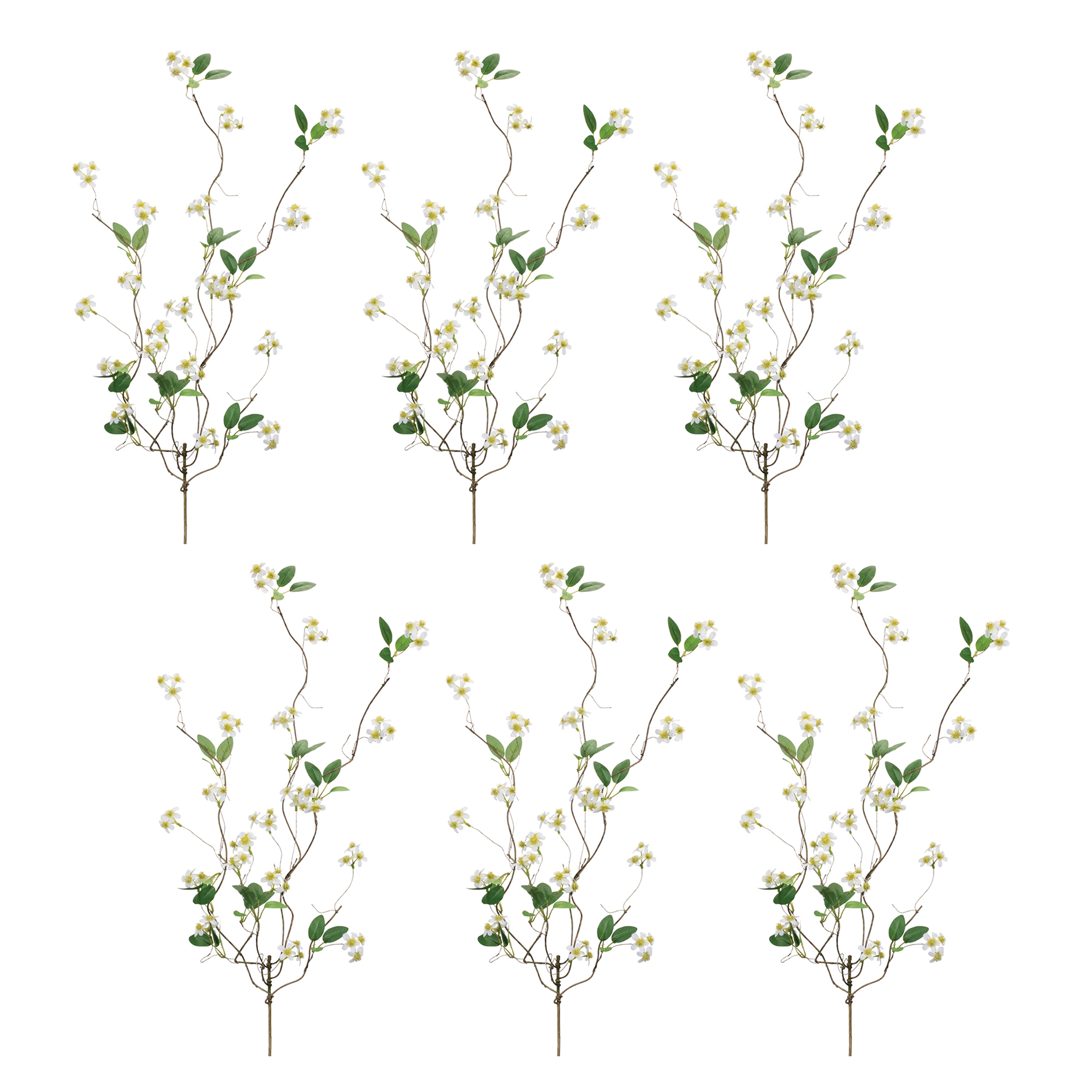 Transform your living space with the charm of nature using the Mini Floral Twig Branch Set! These beautiful faux stems feature delicate white floral accents and earthy green tones, offering a refreshing and natural touch to any room. Crafted from durable polyester, plastic, and wire, they are designed to last and remain vibrant for years. Whether added to a vase, floral arrangement, or wall basket, these mini floral branches create an inviting ambiance that will captivate your guests. Sold in a set of six matching pieces to make a statement in your floral vases or arrangements.