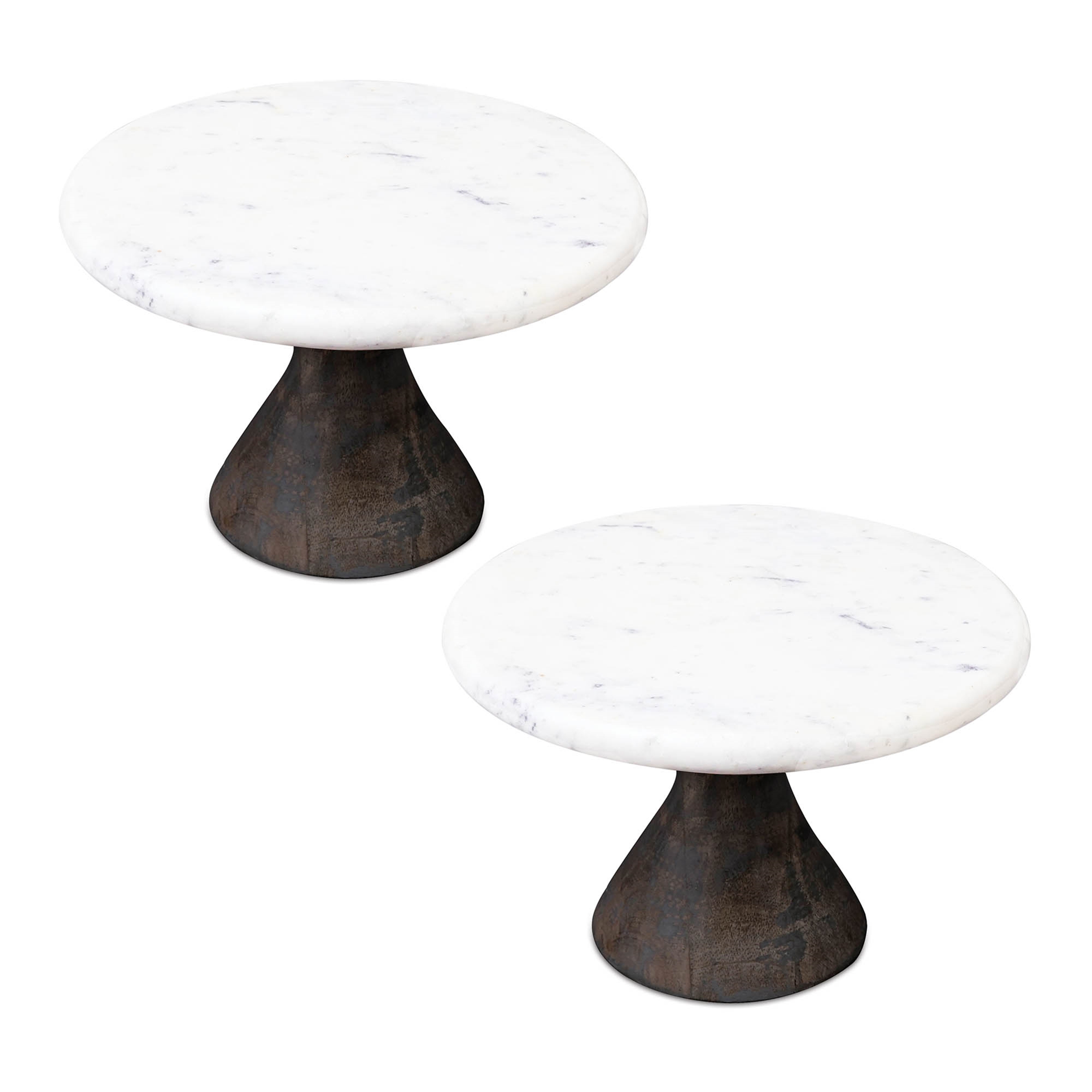 Pedestal Tray (Set of 2) 8″D x 6″H Marble/Wood