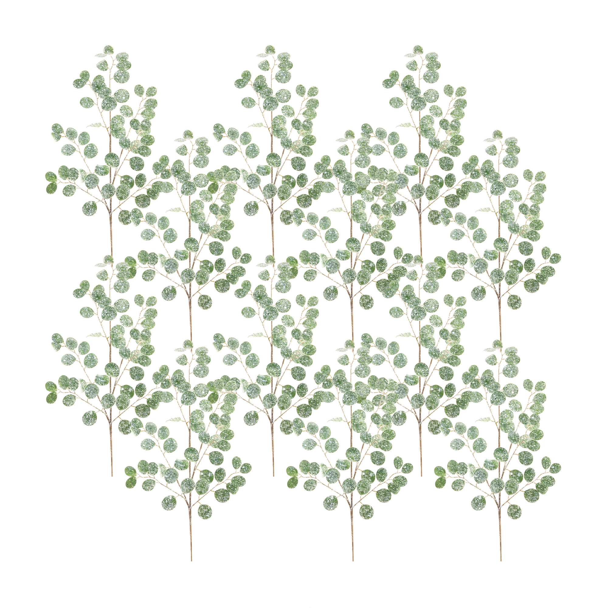 Enhance your holiday decor with the elegant Frosted Silver Dollar Eucalyptus Spray. These lifelike sprays feature delicate silver dollar leaves with a shimmering frosted finish, perfect for adding a festive, wintery touch to any arrangement. Whether used in a Christmas centerpiece, a seasonal wreath, or a decorative vase, these durable foam and plastic stems bring lasting beauty to your space. Designed for both indoor and covered outdoor use, they’re a timeless addition to your holiday decorating collection. Sold in a set of twelve pieces to make a statement in your holiday displays.