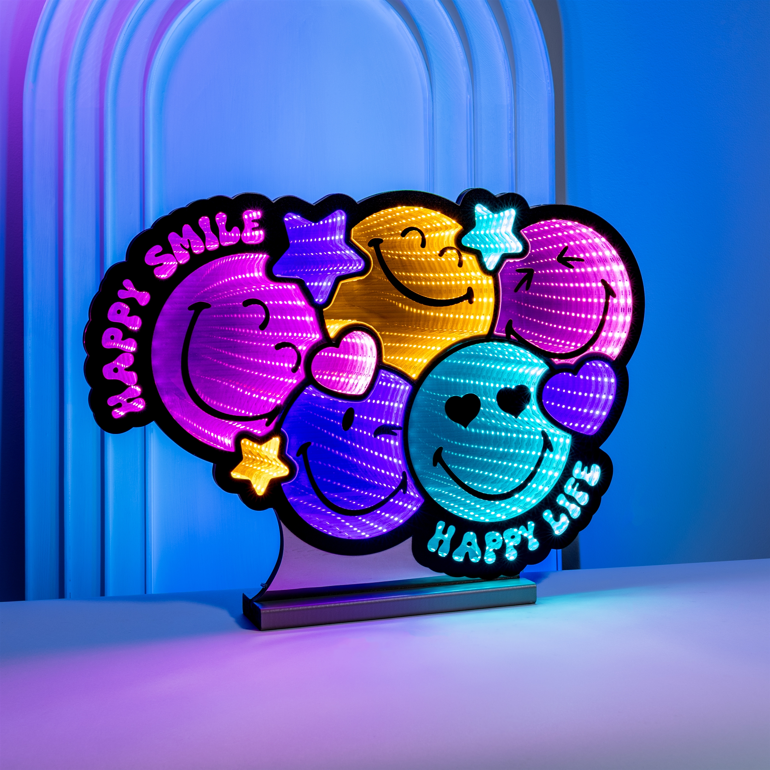 Live brightly with the SmileyWorld® Happy Life Ekkolight. This LED infinity décor piece features a joyful SmileyWorld® design that radiates positivity and feel-good vibes. Created to inspire emotional connection and self-expression, it’s a perfect addition to teen rooms, creative spaces, and anywhere that could use an instant happiness upgrade.