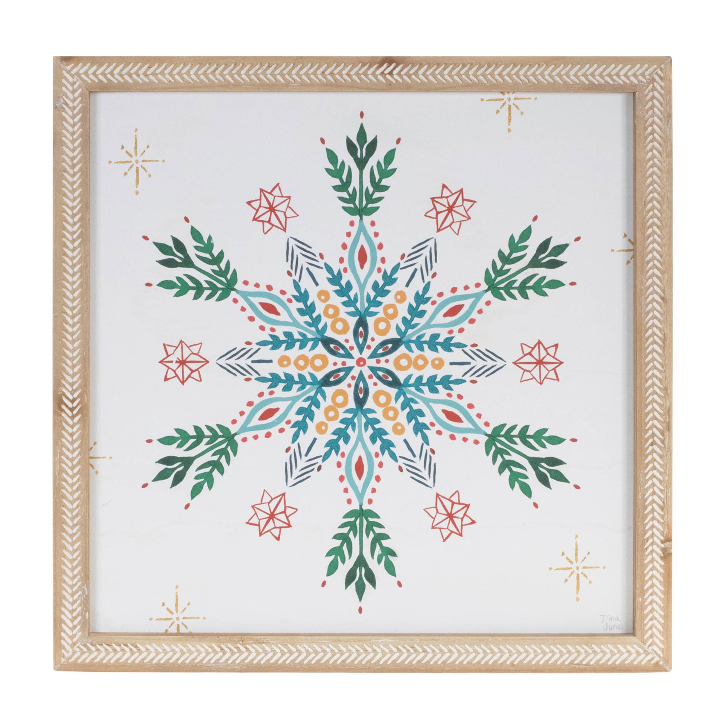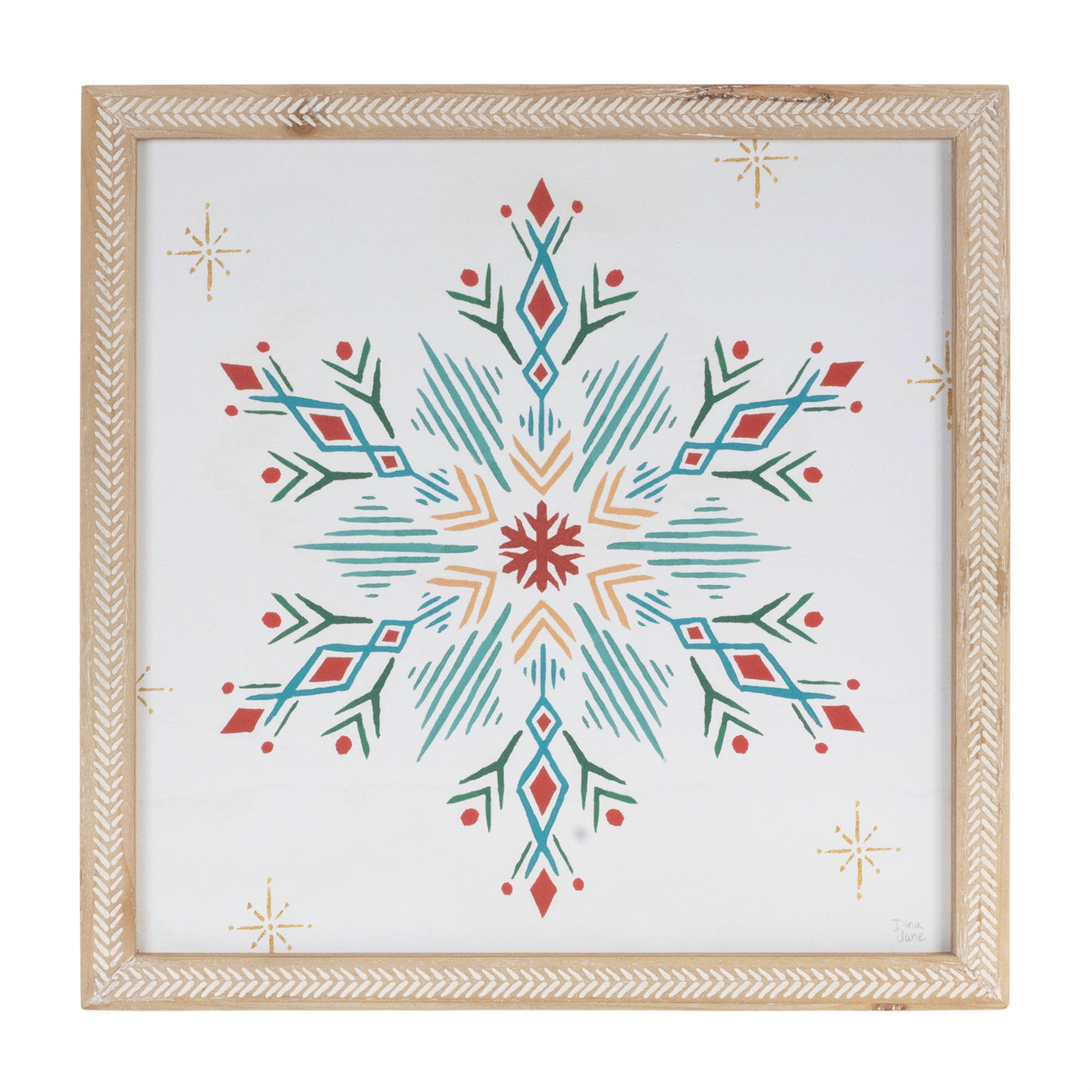 Bring a fresh, festive touch to your walls with this Set of 2 Snowflake Prints. Each piece features a bold, graphic snowflake design in vibrant seasonal colors, framed in a natural-toned MDF frame with a subtle herringbone pattern. Perfect for adding holiday cheer to entryways, living rooms, or above a mantel, these prints blend modern style with classic Christmas charm.
