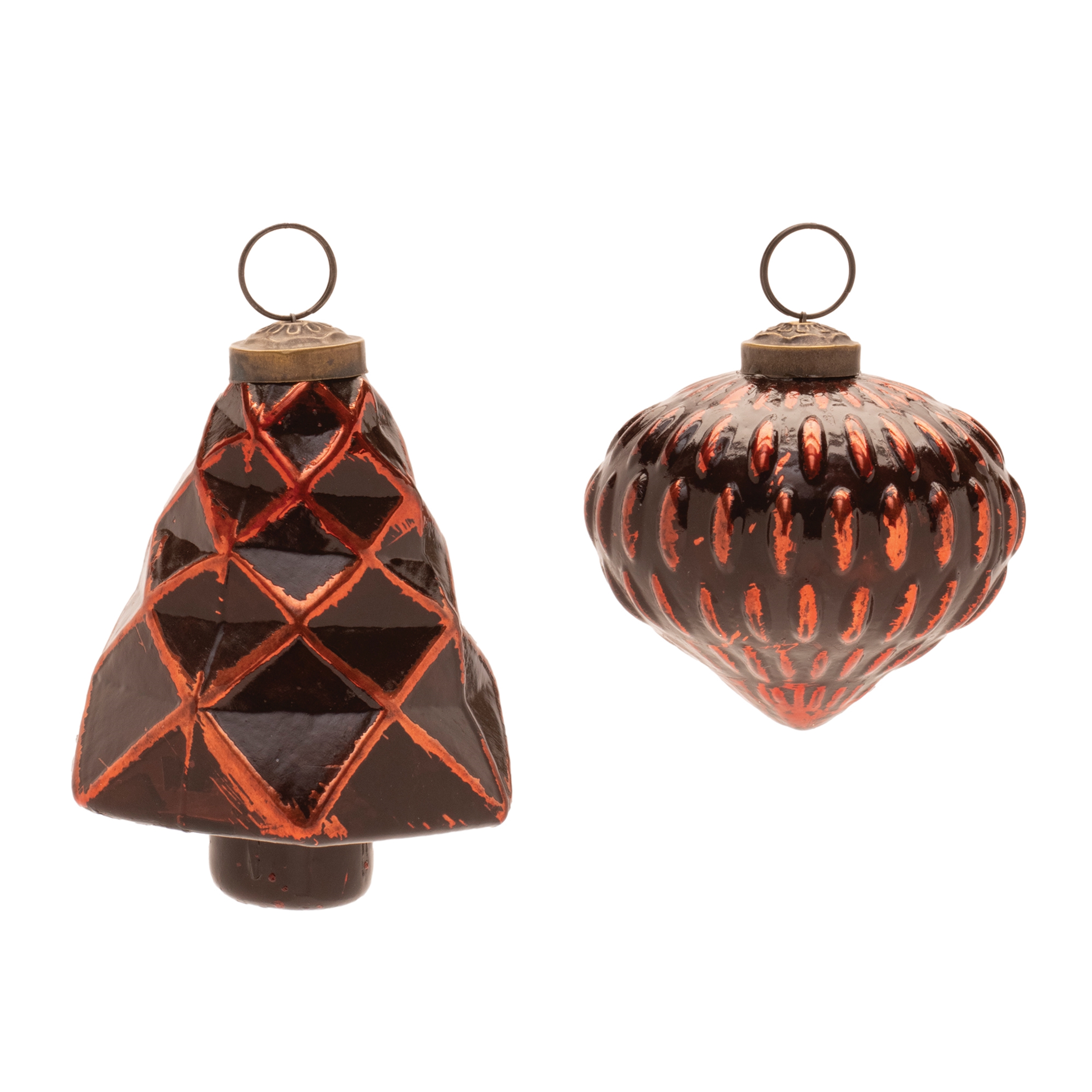 Infuse your holiday decor with warmth and elegance using this set of Textured Glass Tree and Onion Ornaments. Designed in festive red and gold tones with a glossy finish, these ornaments feature modern tree and onion shapes, bringing a contemporary yet timeless appeal to your seasonal display. The rustic brass ornament caps add a vintage-inspired touch, making them a perfect complement to traditional and modern holiday themes alike. Whether displayed on a Christmas tree, woven into a wreath, or styled on a garland, this set of 6 ornaments offer a sophisticated and festive charm.